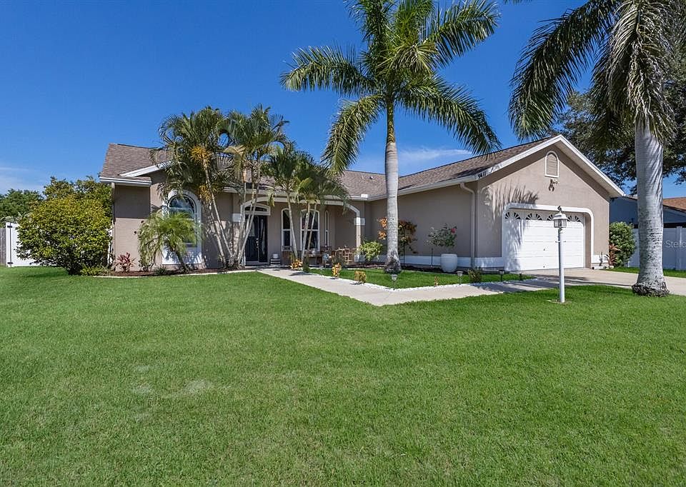 Welcome to your new oasis nestled in Regency Oaks! This charming property offers the perfect blend of modern updates and cozy comforts. Boasting 3 bedrooms and 2 bathrooms, this home is designed to cater to your every need. Step inside to the heart of the home featuring the open floor plan living area, where the kitchen seamlessly flows into the formal dining space. Adorned with wood cabinets, a breakfast bar, and stainless steel appliances, the kitchen is a chef's delight. And with a beautiful modern accent wall, the dining area adds a touch of elegance to every meal. Off the living area discover the primary bedroom, a serene retreat complete with sliders to the patio, 2 walk-in closets, and an en-suite featuring dual sinks, a stand-up shower, and a separate tub. Imagine unwinding in luxury after a long day, surrounded by the tranquility of your own space. Entertain guests in style in the spacious family room, complete with an electric fireplace and stunning barn doors for added privacy. The split floor plan ensures that everyone has their own space, with two separate guest rooms and a guest bathroom offering privacy and comfort. Convenience meets functionality with the inside laundry room located just off the kitchen, making chores a breeze. Outside, the rear covered and screened-in patio provides the perfect spot for enjoying your morning coffee or hosting al fresco gatherings. But the real highlight of this property is the newly vinyl oversized fenced-in yard, offering ample space for outdoor activities and relaxation. Additional features include a reverse osmosis system in the kitchen, a whole house water softener, and air sanitizing UV lights installed throughout the home, ensuring your health and comfort are always a top priority. Located in a desirable area close to highways, shops, and restaurants, this home truly has it all. Don't miss your chance to make this your own piece of paradise - schedule a viewing today!