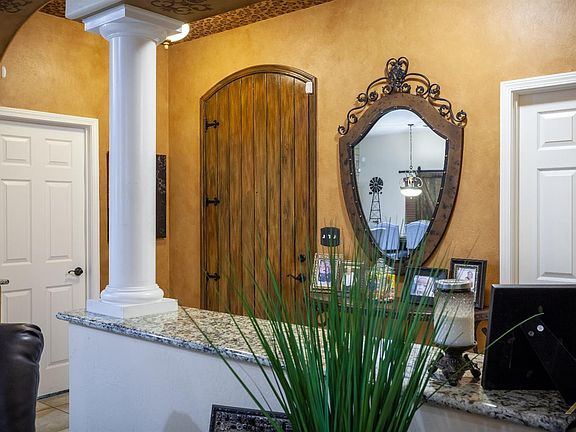 Spectacular Southwest home w/tons of upgrades, an entertainers dream. With custom hand painted walls, by a local artist, home audio system through out home and patio, a home water filtration system and security system. Garage boasts with built in wall to wall cabinets, epoxy flooring, custom mancave in tandem garage(not permitted) w/built in safe. Kitchen has upgraded granite, custom cabinets, upgraded appliances, barndoor on slider, and wine fridge. Living room has an entertainment wall with custom cabinets. Master bathroom has an amazing duel shower with multiple water features, upgraded tile/cabinets and custom closet organizer. Hall bathroom and powder room both have upgraded tile and cabinets, as well! Home features an elevated salt water pool w/Pebble Tec and shear water descents, 5 person spa, outdoor shower, outdoor kitchen, stainless steel sink, Summerset 42 built in BBQ. 10'x 12' loft storage shed and RV parking with security gate, and stamped concrete. Coming soon a new park