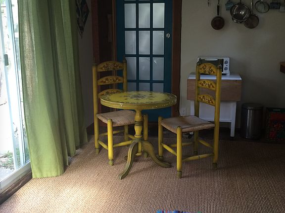 Our cozy 240 sq. ft. studio apartment is tucked into a peaceful garden setting with stunning views of the Santa Cruz Mountains, just a short walk to downtown Ben Lomond. The property is conveniently located 7 miles from UCSC, with a bus stop right in front for easy commuting.