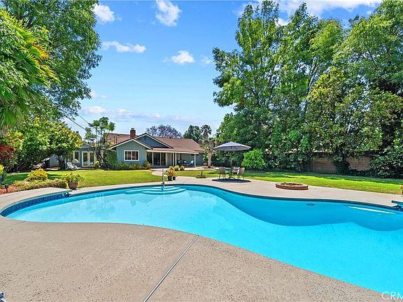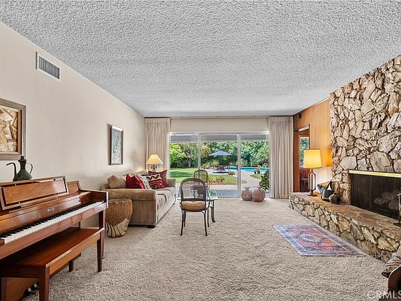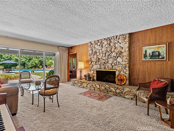 Absolutely gorgeous single story home with 4 Bedrooms, 2 Bathrooms, 2,136 Sq.Ft., 17,288 Sq.Ft. Lot with attached 2 car garage, park like yard with pool. Welcome to the light and bright living room with custom stone fireplace, with plenty of space for entertaining, and sliding glass doors out to the backyard. Family room with wood beam ceiling, wood paneling on the walls, and is open to the kitchen and sunroom. Kitchen with beautiful cabinets, Electrolux gas stove, KitchenAid oven, Whirlpool built-in microwave, and granite countertops. French doors lead to the sunroom with many windows and skylights to let the outside in. Primary bedroom attached bathroom. Three additional bedrooms and a hallway bathroom with 2 sinks, and shower with bathtub. One of the bedrooms with custom built-ins is perfect for an office. Inside laundry room. Wait until you see the gorgeous backyard! Large grassy area, patio with overhang, mature trees, and amazing pool. This is perfect just in time for summer!