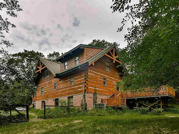 Enjoy the serenity of your own private retreat on almost 5 acres of wooded wonderland! 4 bedroom log home in Rockton, only 10 minutes from downtown and in the Hononegah High School District. Zoned AG. Master suite with full bath and large, open loft on the upper floor. Cathedral ceiling, wood beams, and fireplace in the cozy, country feel living room. Wood beams throughout most of the living space on the main floor. White cabinets and stainless steel appliances in the kitchen. Dining area with door out to the covered porch and large deck overlooking the wooded, fenced 2.5 acres backyard. Bedroom, full bath, and laundry on main floor. Head down to the partially exposed, walkout lower level. Finished with 2 additional bedrooms, rec room, and full bath. The rural, quiet property is just minutes away from the Wisconsin border, Sugar River, and there's a 9 hole golf course nearby. Roof 2017.