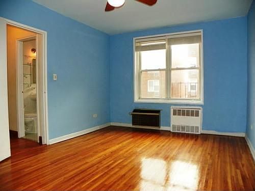 Spacious 2BR with renovated kitchen & bath. Hardwood floors, 6 closets. LR/DR Combo. 12x28 master BR. 11X17, 2nd BR 8X10, laundry and Doorman on lobby level. Small pets OK. Express bus in front.