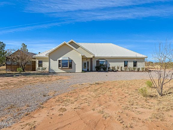 Gorgeous turn-key property nestled on a 10-acre parcel with stunning 360-degree Mountain Views! This property boasts steel construction—worry free for years to come! In the interior of the home, be greeted by an open concept floor plan and beautiful new wood laminate floors throughout, with ceramic flooring in all the right places! Check out that stunning double-sink kitchen! It's expertly designed for multitasking and offers top, high-end cabinetry! The primary suite includes a luxurious jetted tub and a separate frameless glass shower, giving you a personal spa experience at home! Fresh interior paint! Hold onto your gardening gloves and enjoy your new green house! Additionally, there's a detached 2-car garage/workshop! Plus a 5-acre parcel for sale separately right next door!