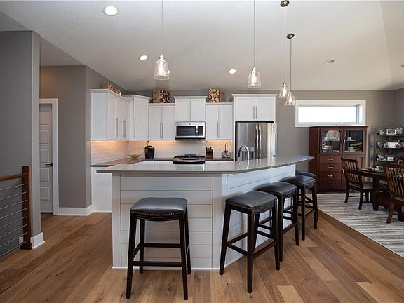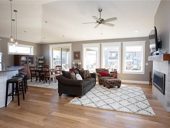 After an amazing day on the greens or at the pool, get in your golf cart and head home to your 2017 Drake Homes Echo Valley resale located on a quiet family-friendly culdesac. This split bedroom ranch features 9' ceilings that rise into a high vault, 8' sliding glass door, barn tile gas fireplace with a wrap around mantel, and two-tier kitchen island wrapped in shiplap. Open your walnut barn door to find a large mudroom with shiplap drop zone and master wing. The ensuite boasts a stylish tile shower, stand alone soaker tub, and private toilet room. The main level laundry has access from the master closet or hallway. Finishing the upstairs is a guest bedroom and bath. The basement features two bedrooms, one bath, electric fireplace, full bar, space for a game table, and ample storage. Additional perks include an oversized 3 car garage with workspace at the rear, irrigation, dual-climate HVAC, and MORE! Tax Abatement through August 2023!!