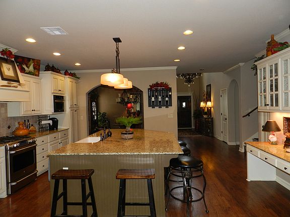 Great South Tulsa home in desirable gated community! Open floor plan with formal dining, office and large island. Vaulted ceiling in living room with double sided fireplace to exterior back patio. Master bath on 1st floor with connection to laundry room. 5th bedroom located over garage could be used as game room. Pullman bath upstairs connects to bedroom and hallway. Large covered patio with tv hookup, fire pit and fireplace. Neighborhood Pool and Clubhouse. Jenks Schools!