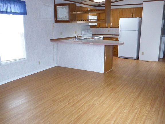 A two bedroom/one bath home in an all ages park! With bedrooms on each end of the home, you have added privacy. Large bathroom with walk-in shower. Kitchen has a skylight and is open to the living room w/ vaulted ceilings. Comes with all appliances including washer/dryer. Nice protected deck. Workshop area with power. Monthly space rent of $330.00 also includes water/garbage and sewer.