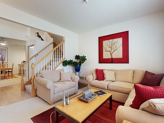 Turn-key southwest facing end unit in beautiful park-like setting. Main level features a gas fireplace in the cozy living room. The spacious kitchen with breakfast bar is open to the informal living room. Step thru the sliding glass doors to a very private west facing 10x14 patio. Enjoy evening meals in this serene setting of mature trees and green space. Upper level features a loft area and 3 bedrooms. Step inside the spacious primary bedroom walk-in closet. Separate tub & shower in the upper level full bath. Laundry & powder room on the main floor. Newer appliances, furnace/AC. Seller has paid off the assessment for the new fire suppression system. Minutes to Lake Riley, Richard T Anderson Trails, dining, shopping & freeway system.