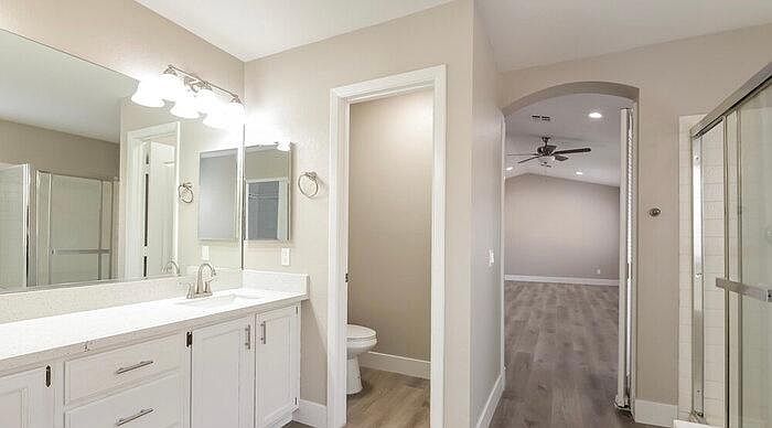 From the moment you step inside this 3 bedroom, 2.5 bathroom rental home located in Las Vegas you'll know it's the one for you. Enjoy a sophisticated living room with gas fireplace. The eat-in kitchen boasts a walk-in pantry, plantation shutters and easy to clean tile flooring. The master bedroom includes a walk-in closet and en suite with dual sink vanity, separate shower and oversized tub. Outside you'll find a 2 car garage and great backyard. Schedule your tour or submit an application today!