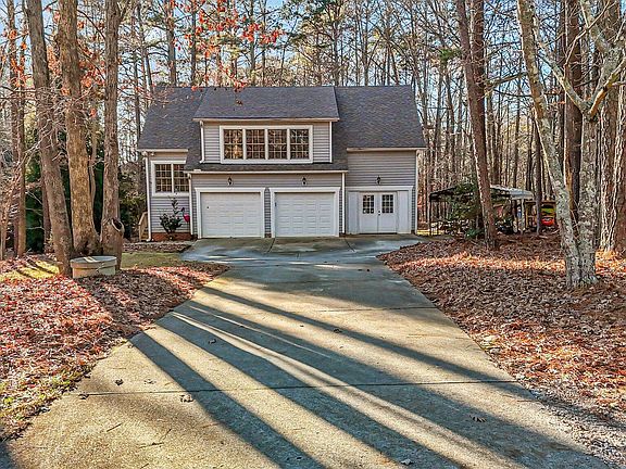 Don't rent when you can own this unique home on just under an acre of wooded land! Cozy Living space above 2 CAR GARAGE. 1 bedroom with large walk in closet, 1 bath. Kitchen opens to family & dining area for casual space. Washer, dryer, refrigerator included. Lots of windows let the sunshine in! Plus 11 x 20 attached workshop! Endless possibilities for garden space or entertaining in the yard. Close proximity to FALLS LAKE!! (Mirror on bedrm wall, exterior boat canopy & kayak rack will not stay)