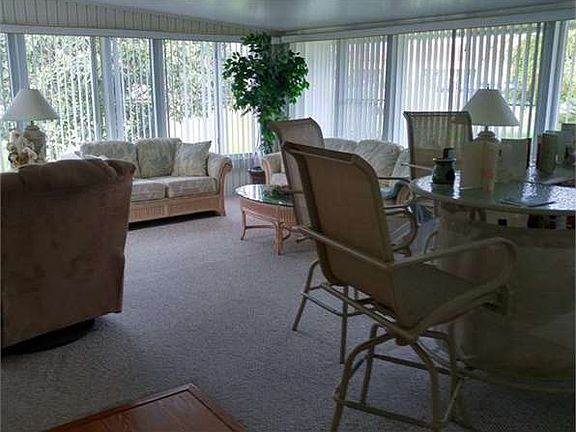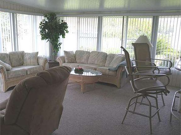 Great Location - Great View an Amazing Location! Just steps to the clubhouse with pools, restaurant, activities, etc. This 2 bedroom 2 bath home is in pristine condition with Thermopane windows, Corian countertops and new laminate and carpet flooring. The huge 340 s.f. Florida Room is perfect for entertaining and includes a second refrigerator and a bar. This is truly a turn-key home, so just bring your clothes and golf clubs! This is a must-see home!