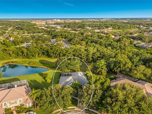 Your dream home awaits on over a HALF ACRE, at the end of secluded cul-de-sac with beautiful mature trees in the fabulous community of River Club, where there are no CDD fees! This charming 4 bedroom home has a generous size study with closet that can easily serve as a fifth bedroom. Perfectly poised on a gorgeous lot with views of the serene lake offerring peace and tranquility., This home has been lovingly updated with newer AC, new flooriing, fresh paint, plantation shutters, resurfaced pool with new pavers, pool cage was totally rescreened, beautifully updated kitchen with new granite & backsplash, updated bathrooms with new granite, and so much more! You will love the generous size living room with sliding doors to the outdoor entertaining space. The dining room is open to the living room and has ample space for large family gatherings around the table. Enjoy a spacious size kitchen with closet pantry and bar seating for the entire family. This split floor plan home is nestled on one of the nicest lots in the neighborhood. The location is centrally located and convenient to all the shops and restaurants at University Town Center, Interstate 75, nationally ranked beaches, fabulous schools, parks and excellent schools! River Club is a golf community with large lots, mature trees and no CDD's! What are you waiting for? Make your offer today and start enjoying the Florida lifestyle!
