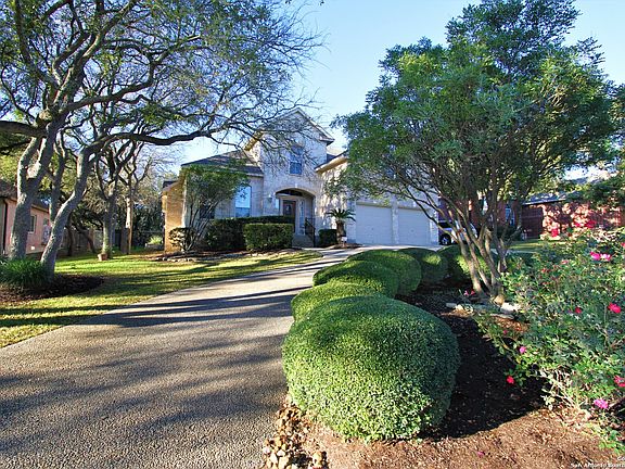 Welcome to this immaculate, spacious luxury home on 0.64 acres located in the beautiful and scenic Fossil Springs Ranch. This meticulously maintained home has a professional interior design, professionally designed landscaping, and a custom lap pool by Keith Zars with built-in sunning deck/seating. This home boasts soaring ceilings, custom walnut cabinets, formal dining, formal living room, stone fireplace, new stainless steel Frigidaire appliances, GE stove with reversible grill/griddle, custom art niches, and so many more custom features and upgrades. Drive up to the oversized circular driveway surrounded by a beautifully landscaped yard. Once entering the home, you will appreciate the intricate designs, ample space and storage, winding staircase, large family room, and windows that allow an abundance of natural light to enter. The master bedroom is a spacious retreat with a well-designed full bathroom to include a whirlpool tub, separate shower, and separate vanities. There is an office/craftroom downstairs that can easily be used as a guest (5th) bedroom. Upstairs hosts 3 bedrooms, a large game room, and loft. Relax in the back yard, which is truly an oasis, having been designed by a landscape architect. Enjoy al fresco dining on the large covered patio, overlooking the sparkling custom Keith Zars lap pool. All the outdoor amenities make it perfect for entertaining family and friends. This home has so much to offer, please schedule a private showing to see all the wonders of this home. Located in charming Helotes, TX and in the award-winning Northside ISD. Enjoy the attached virtual tour and aerial video.