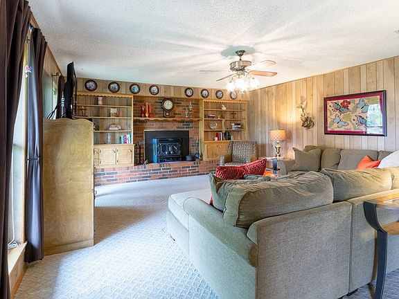 If you're looking for a home nestled under the shade of an eighteen-tree pecan orchard, this is the one for you. This one owner home has been updated over the years and features 3 bedrooms, 2 baths, 2 living areas and a large eat-in kitchen with lots of ash wood cabinetry and an adjoining room that can be used as a second dining area or home office. The primary living area has custom bookcases and a wood-burning stove. The orchard, house, 2 car carport, 1 car detached garage used as a workshop, enclosed metal RV building, well house, and barn sit on the front acre of 2.26 total acres. The yard and trees are on an irrigation system. Windows updated 2013; composition roof installed 2020; 1 ton mini-split HVAC added to the second living area in March 2021.