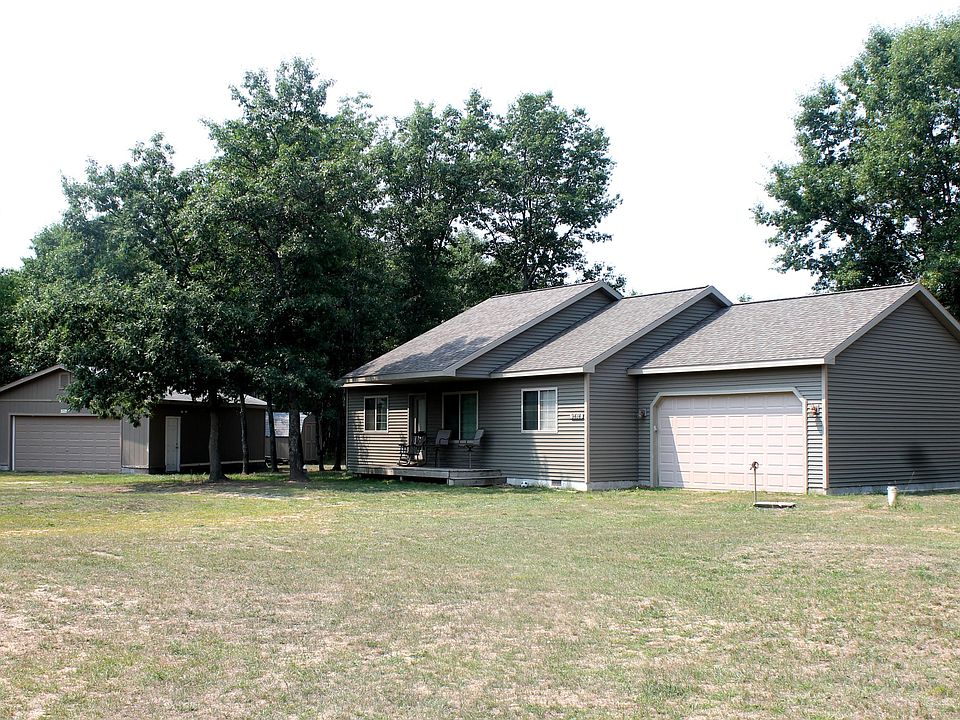 Built in 2013, this home sits on 10 acres adjacent to STATE LAND on two sides! 3 bedrooms, 2 Bathrooms with an open floor plan, wood stove and a master suite on the opposite side of the home as the two spare bedrooms. Central Forced Air unit. Attached 2 car garage and an additional detached 2 car garage will allow plenty of storage for your cars and all the toys! Walking/Riding trails throughout the 10 acres.