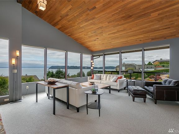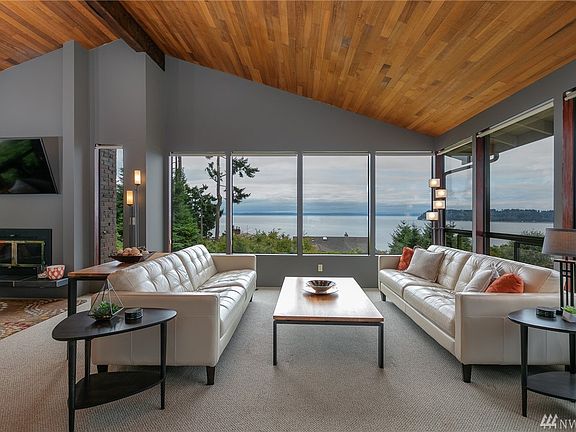 Spectacular West Coast VIEW Property with second BUILDABLE lot. Located on a private cul-de-sac in coveted Olympus Terrace, this home features soaring inlaid cedar cathedral ceiling & beams, open layout & walls of windows. $225k invested in chef's center island kitchen, new roof, luxurious bathrooms, flooring, window coverings & more. Imagine BBQ parties on the deck with a fire pit & bar in a park like setting with fruit trees, bushes & greenhouse. Incredible Sound & Olympic mountain sunsets!