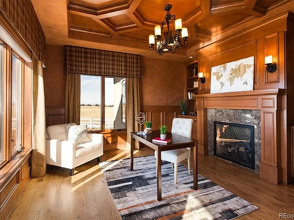 Mountain view masterpiece! This spectacular retreat offers an amazing living experience, inside and out. From sweeping views of the Rocky Mountain Front Range to beautiful interior spaces, this 35-acre Franktown estate offers impeccable quality and extraordinary craftsmanship. Surround yourself with custom finishes throughout this spacious oasis! Entertain your friends with a beautiful party-ready kitchen with butler's pantry, fully equipped media room, custom wet bar, wine cellar, fitness room, hot tub, steam room and sand volleyball court. Welcome your visitors to a 1,600 sq. ft. private guest house with craft room/art studio. This is a toy lover's DREAM property with a 4-car attached garage as well as a 3,200 sq. ft. heated, drive-through RV building big enough to store your trailers, boats, cars and ATV's! The home is equestrian ready with 2 pastures, plenty of grazing land and a 4-stall horse barn with tack room. Change your life with this amazing opportunity!