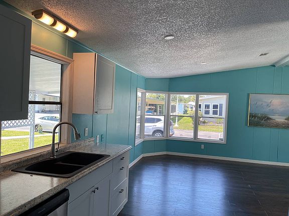 This is a mobile home for sale in a 55+ community on a rented/leased lot. This is an updated 2BR/2BA model with vaulted ceilings with a custom coastal paint color. There is a 10 x 16 front set screened lanai with a concrete floor for watching the world go by. The kitchen has 8" dark wood laminate, custom cabinets, custom paint, upgraded countertops and new appliances. There is a formal dining area adjacent to the kitchen. There is a closet in the kitchen with washer/dryer hookups. The living and dining areas have vaulted ceilings, 8" dark wood laminate flooring, panel walls, custom paint and a ceiling fan. The master bedroom has carpet, panel walls, a ceiling fan, a walk in closet and a master bath en suite. The master bath has a skylight, 18" vinyl flooring, an updated single sink vanity and a walk in shower. The guest bedroom has an oak look laminate, a walk in closet, a ceiling fan and panel walls. The hall bathroom has 12" vinyl flooring, an updated single sink vanity and a shower/tub combination. There is a carport that can house 2 cars tandem style with a shed on the back for extra storage. There is a screened carport lanai offering an additional outdoor living area. The lot rent is $538 and includes lawn, cutting, edging and blowing along with the community amenities outlined below. It is a small price to pay for a year round or seasonal home. Veranda Springs is a 55+ pet friendly community conveniently located off I-75 between Tampa and Ellenton near the Ellenton Outlets in Parrish, FL on Route 301. The community was established in 1988 and includes 350 home sites. It offers a clubhouse, swimming pool, fitness center, tennis courts, fishing, shuffleboard, billiards, library and game/craft rooms. This beautiful community is perfect for those looking to get the most out of the Florida lifestyle. Start looking in the Veranda Springs community to get the dream retirement you deserve!