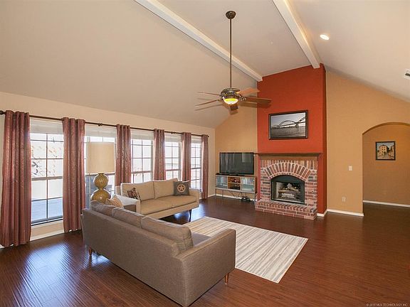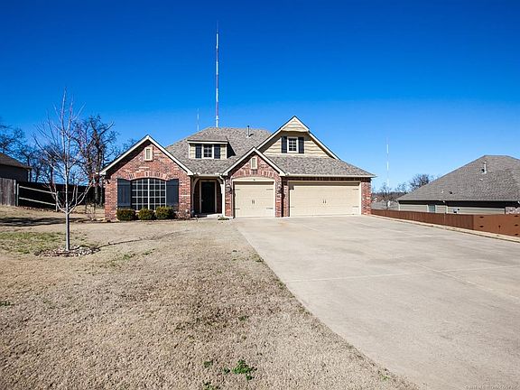 Very well maintained hs on 1/2 acre lot open 3/2/3 plan kitchen w granite all bdrms dwn Game rm up Master bth w double sinks + whirlpool tub Huge deck w/hot tub Pergola w stone FP Sprinkler system 15x15 shop level driveway Just 15 min to Tulsa