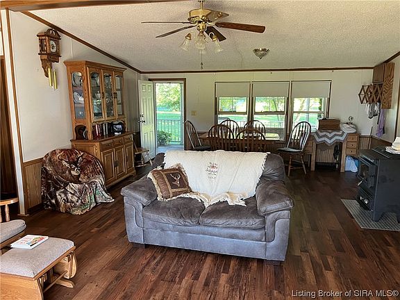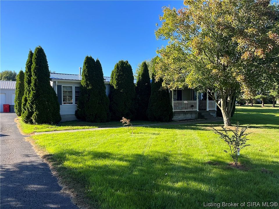 Lovely 3 bed, 2 full bath home with 3 car detached garage sitting on 5.4 acres just minutes from New Washington, IN. The home also features an 18 x 10 covered front porch, 22 x 12 covered deck in back, lean to off the back of garage, metal roof and dedicated 1 acre of pasture. Park like setting!