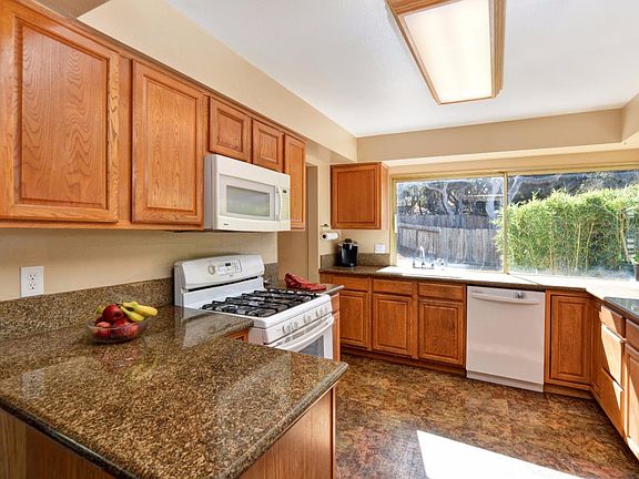 Wonderful home in desirable Oak Hills. Spacious floorplan centered around interior courtyard. Master bedroom with attached walk-in closet and sunken Roman bath. Two additional rooms share the remaining bathroom. Large living room and dining area with sliding door to spacious backyard with dog run/kennel. Kitchen has updated granite counters and adjoining family room with wood-burning fireplace. Complete front yard is enclosed with wooden fence with ample sun-light and privacy. A blank canvas to make your own! Space for a RV next to garage (unpaved) and long driveway with ample parking for family gatherings! Make your move to Oak Hills!