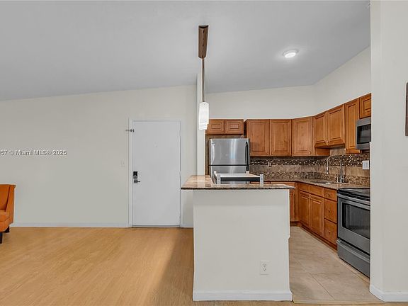 Beautifully updated 2/1 condo featuring an open floor plan with wood-look flooring and plenty of natural light. The kitchen boasts granite countertops, wood cabinetry, decorative backsplash, and stainless steel appliances. The breakfast bar with pendant lighting flows seamlessly into the spacious living area, perfect for entertaining. Primary suite includes walk-in closet and updated bath. Enjoy resort-style amenities including pool, fitness center, and clubhouse. Conveniently located near shopping, dining, and major highways. Move-in ready! Minimum of 700 credit score*** This is NOT a 55+ community.**ALL AGES WELCOMED**