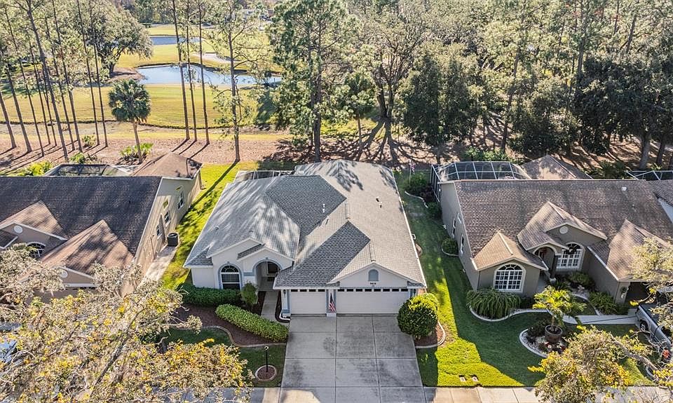 GORGEOUS 4 BEDROOM HOME W/ 3 CAR GARAGE ON GOLF COURSE IN HIGHLY SOUGHT TIMBER GREENS! This 3-way split floor plan is amazing! The kitchen boasts Granite counter tops, wood cabinets, Stainless steel appliances, Pantry, eat-in dining space, and island/breakfast bar! The Primary Bed/Bathroom features 2 walk-in closets, Jacuzzi tub, oversized shower stall, and 2 vanities! The living room has a gas fireplace that makes it one of the coziest rooms in the house! The 4th bedroom makes the perfect office or hobby room, but does have a closet, so can be used as a 4th bedroom as well! The A/C and H2O heater are both newer, and the roof was installed in 2017! Relax out back on the screened-in lanai that overlooks the bautiful golf course! This view is amazing! The 3-car garage is obviously super spacious and somewhat rare in this community! ALL OF THIS IN THE BEAUTIFUL 55+ GOLF COURSE COMMUNITY OF TIMBER GREENS! Timber Greens amenities include its 18 hole golf course, clubhouse, community pool and spa, tennis courts, pro shop, restaurant and so much more! This one is priced to sell and won't last long. Set up your showing today!