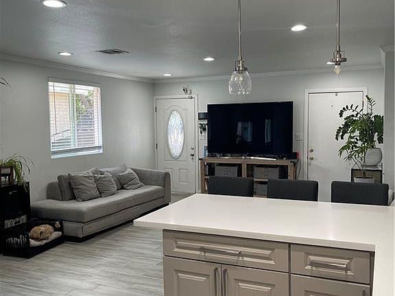 This Front house features a beautiful bright & spacious open floor plan, 3 bedroom, 2 full bath, modern clean kitchen, white quartz counters, engineered flooring, tile flooring, recess lighting, new paint, crown moldings, central A/C & heating, tankless water heater, laundry area, attached garage, and driveway with private gate. Centrally located with easy access to freeways, schools, and shopping. from 1-3pm Owner pays water. Small pets allowed with additional deposit. Back unit is occupied.