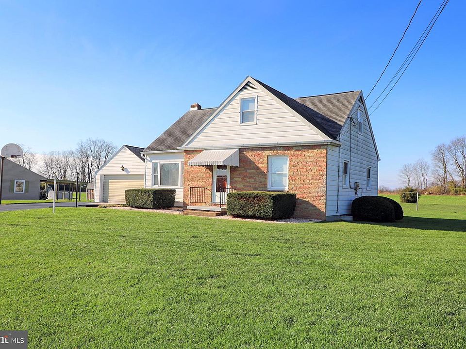 Just Lowered and Move in Ready! Perfectly Kept Brick Front Cape Cod home. This Quality Constructed home offers Original Hardwood floors and The Classic true Wood Kitchen Cabinets You will LOVE! Traditional Open Country Floor plan with Large Main Level Bedrooms and a Newly Remodeled Full bath. Living Room off Kitchen is inviting with Maximum Sunlight from the New Bay Windows. Upper level offers another Full bath and 2 more Large bedrooms with Tons of storage space. Don't forget the Replacement Windows are upstairs too! Seller has Enclosed an addition off the kitchen with a Wood Stove for Warming those Beautiful Fall Evenings while you Enjoy the quiet Country Side setting. Basement is Unfinished with LOTS of room for Endless possibilities. Separate walk out Leads to a Large Flat back yard lot. Sight View from backyard is Farm Land and Privately Owned and Operated with No Future home building recorded. Detached 2 Car garage offers a Loft for yet again... More storage Space. Separate Additional Workshop in back of home, Just Adds those Finishing touches YOU are Looking For. Location of this home is Very sought after and DOES apply for USDA lending Buyers! Seller Intends to have a Well Installed and just awaits YOUR offer for Approval. Can be done before settlement! Call Agent for questions.