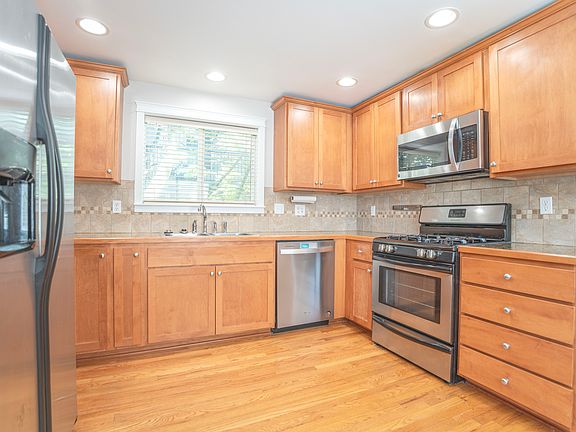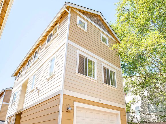Bright, freestanding (Detached) single family home in a safe quiet neighborhood in Greenwood. Gorgeous kitchen w/eating space and gas range. Kitchen flows into living room with gas fireplace, hardwoods and windows on all 3 sides. First floor: Garage, Bedroom + Full bath. Second floor: Spacious living rom + kitchen with large dining space Third floor: Primary bedroom + Large guest bedroom + full bath, Laundry Brick patio, fenced and landscaped yard w/dog run - ideal for relaxing. Attached OVERSIZED 1 car garage. Walk to Greenwood park, p-patch, shops & cafes. Fabulous Commuter Location. Tenant responsible for all utilities and yard maintenance. Upfront payments: Security Deposit + First month rent + prepaid last month rent. No Smoking Policy. 12 + month lease term.