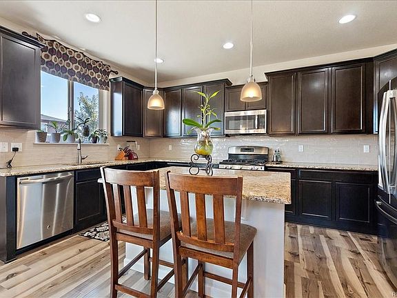 Like new 2-story in Candelas with Great room concept offers open and bright floor plan perfect for entertaining. Stainless steel appliances and granite counters in gorgeous kitchen. Three bedrooms up. Good size master suite. Over sized yard to enjoy sunsets from the back patio. The unfinished basement allows room for growth. Both indoor and outdoor space offer low maintenance. The location is minutes to fishing ponds, trails, lakes, mountains, camping, parks, play grounds, great shopping and dining. The community focus is outstanding and centered on activities throughout the year for you. 13 miles of trails & 193 acres of open space are just some of the features of this well planned community! HOA is a metro district and fees are incorporated into the property taxes. The community is complete with a fitness center, swimming pool, community garden, parks and open space.