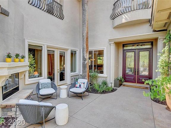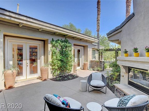 Bright, High-energy! Guard-Gated Summerlin Home ideal for Multigeneration use! Located in Canyon Fairways on private Community Greenbelt. Contemporary, professionally designed landscaping - aesthetic and practical. Gated private entry courtyard w/ fireplace. Upgraded gourmet kitchen. Granite countertops. Large island w/ separate prep sink & Enclume pot rack. New Sub Zero/Wolf stainless steel appliances with M Series double ovens. Dual Miele dishwashers, Large walk-in pantry & so much more! Formal & highly upgraded Bar w/ Sub Zero ice maker & refrigerator. Spacious family room w/ retractable TV cover, custom shelving, gas fireplace & backyard access. Custom Library/Private Study. Additional Study/Office. Personal space for quarantine: each Bedroom a private Suite. Master Suite downstairs & separate. Cat6 cable, Hard-wired security cameras, DVR storage, Secret safe room. Upstairs Game Room w/ Pool Table (stays). Pool/Spa Combo w/ water feature. A must see!
