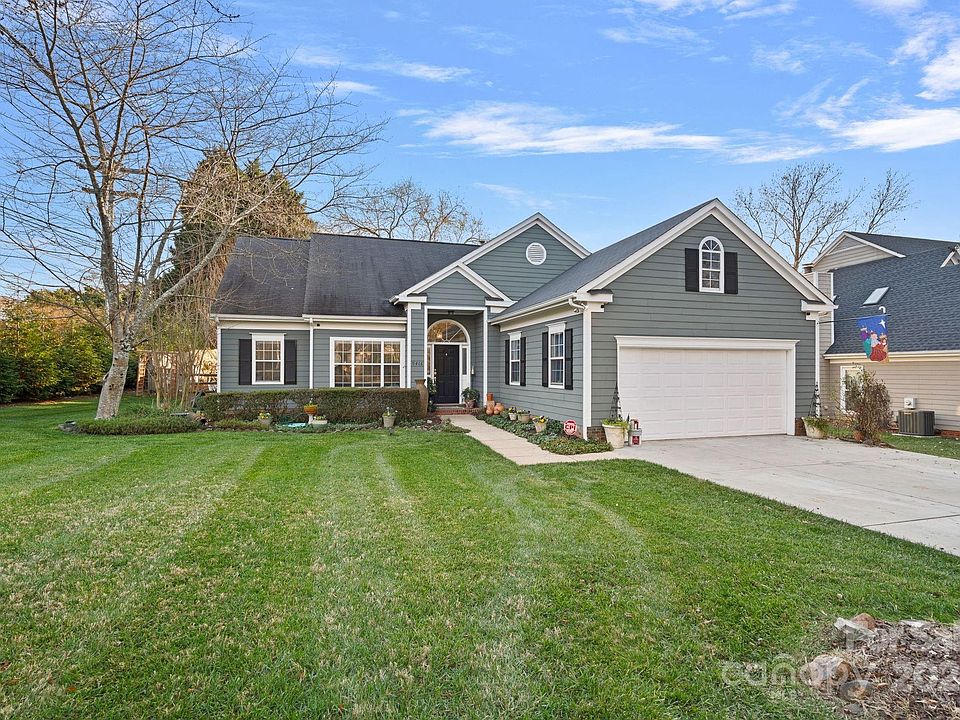 Home is calling! With an open flowing floor plan this home is located in the heart of Huntersville. This meticulously maintained and updated home is ready for new owners! The living area has vaulted ceilings making the open floor plan feel even more expansive. The living room includes a gas burning fireplace. The kitchen has tile floor along with updated quartz countertops, matching white appliances, and gorgeous blue cabinets. The laundry room offers additional storage. Beautiful plank flooring throughout the entire home and a brand new roof was installed in January 2024. The primary suite offers large walk-in closet, double vanity in the bathroom, and separate shower/tub. The large fenced-in backyard with a deck and privacy landscaping aids in creating a backyard oasis. Location, location, location! Conveniently located near multiple grocery stores, local restaurants and shopping. With easy access to 77, Birkdale and uptown are a short commute.