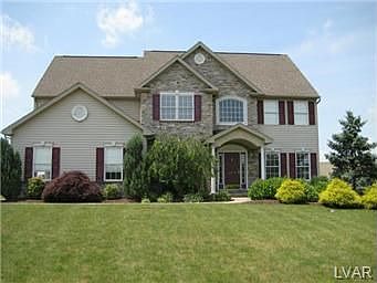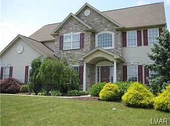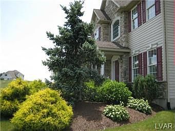 IMMACULATE describes this beauty only minutes from I-78. Enjoy country living on small cul-de-sac adjoining Weisenberg Elementary. Open foyer & family room w/9 ft. ceilings & hardwood floors throughout 1st floor. Foyer is flanked by formal LR w/French doors (could be office) and large dining room highlighted by crown & chair molding. Expansive two-story family room highlighted by open staircase to 2nd floor, overlooking foyer & FR. Propane stone fireplace is flanked by large windows. Island kitchen has raised panel solid maple cabinets and spacious nook w/sliders to deck. Upstairs the impressive master suite has a tray ceiling & luxury bath with double vanity, jetted tub, private commode, large walk-in closet. Plus there is a convenient laundry on this level. Three roomy BRs & hall bath w/double vanity complete this level. The lower level has an additional FR plus loads of storage, outside exit. Exterior shows well w/fabulous stone work & lush landscaping.