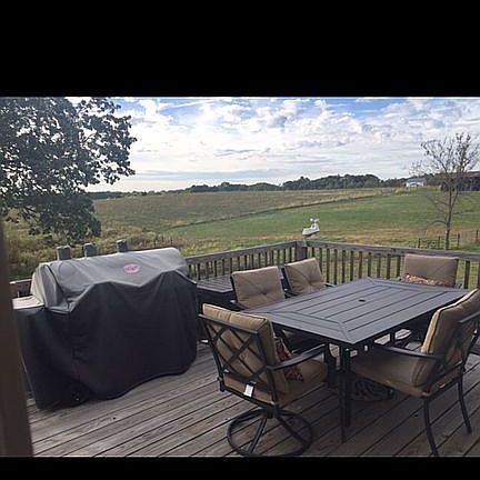 You won't want to miss out on this stunning ranch situated on nearly 5 acres. You'll enjoy the open concept kitchen and living area, gorgeous hardwood floors, vaulted ceilings & incredible views of the rolling hillside. The kitchen is loaded with custom cabinets, pullout drawers, full pantry, stainless steel appliances and breakfast bar. The spacious master suite is on the main level with his and hers walk-in closets, private bath and walk-in shower. On the lower level you'll find a massive family room, 3rd bedroom, full bath, John Deer garage and storage space. Walk out to the deck or back patio from both the main & lower levels. A 40x60 Shop built in 2021, with a full bathroom, heated, cooled, and with a security system with 2- 12x12 overhead doors. Enjoy low energy bills with the high efficiency ground source heat pump and foam insulation.