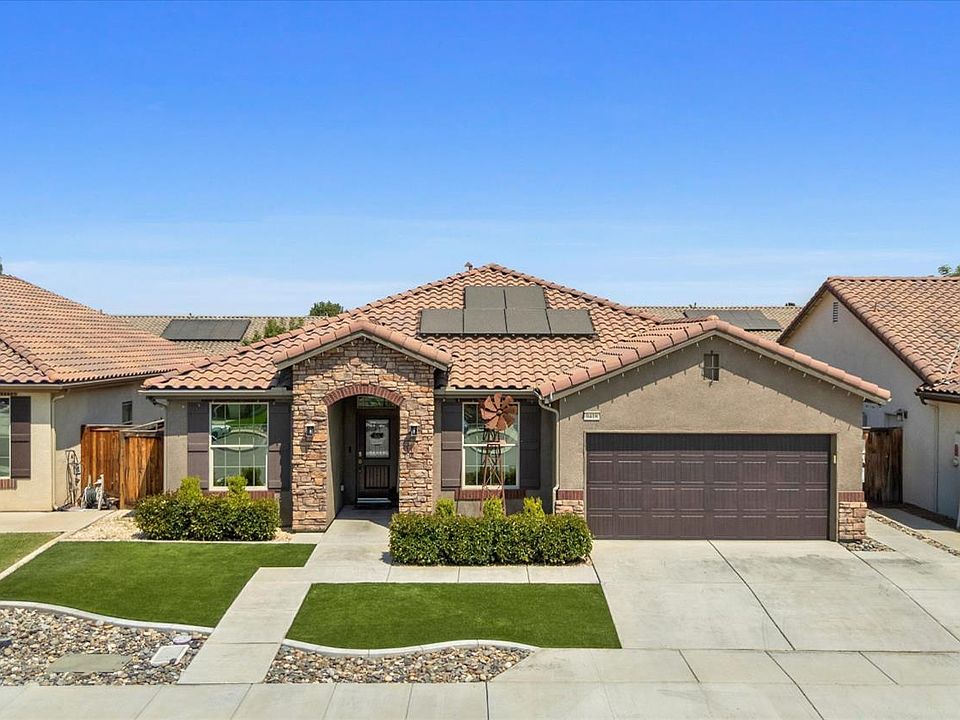 This beautiful Lennar home is located in the desirable Gossamer Grove community and offers 2,015 sq. ft. of well designed living space. The split wing floor plan includes 4 bedrooms and 2 bathrooms with vaulted ceilings and a spacious open living room that creates a welcoming atmosphere. The kitchen features a large island with seating, stainless steel appliances, granite countertops, and a cozy dining nook. Interior features include neutral tile flooring, built in internet boosters, an upgraded primary shower, and many smart home features. The backyard is perfect for entertaining with a pool secured by a removable safety fence, a covered pergola, and an extended concrete patio. The front yard features turf and low maintenance plants for easy landscaping. Close to community amenities including parks, pickleball courts, outdoor exercise equipment, shaded picnic areas, and a basketball court. Don't miss this incredible opportunity!