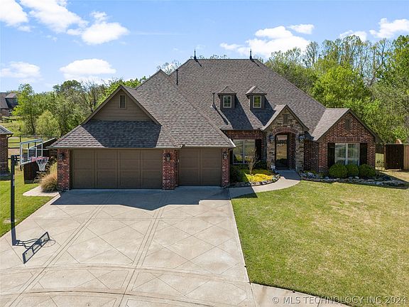 Escape to privacy in this stunning one-story nestled in a serene family-friendly neighborhood! Meticulously cared for with beautiful lawn, flowerbeds, & spacious 3-car garage. Step into an open- concept entry with formal dining room open to the living room with a cozy gas fireplace & new hardwood floors. Choose your seat & enjoy the large private backyard with gorgeous views of the lush greenbelt. Fully fenced with gate access to the stocked pond! Lovely private office w/built-ins & closet. Split plan w/4 bedrooms, walk-in closets, & 2.5 bathrooms. Spacious primary bedroom overlooks the beautiful wooded greenbelt, features a luxurious en-suite bathroom with a spa tub, large shower, his & her vanities, & walk-in closet. The gourmet kitchen complete with sleek granite countertops, large island & walk-in pantry. Tons of storage! Large laundry room with dropzone. 3-zoned heat & air unit saves money & keeps everyone comfortable. Saferoom provides peace of mind! Barnes Elementary.