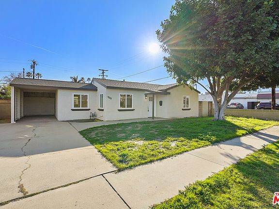 This fully renovated home in Bellflower boasts modern elegance and functionality, featuring vinyl wood-looking floors that seamlessly blend with the stylish waterfall quartz countertops in the kitchen. The main residence includes 2 bedrooms and 1 bathroom, complemented by a new stove appliance. A convenient carport is located adjacent to the front door, with additional parking available inside the side gate. The standout feature of this property is the detached garage, transformed into a charming guest home, complete with a full bath and kitchen equipped with a gas stove. This guest suite offers a cozy one bedroom along with living and dining areas, making it an ideal space for generating rental income or accommodating guests. The garage, approximately 672 sqft, has its own private entrance, providing added privacy. Moreover, the home's solar system is fully paid off, enhancing its energy efficiency. With easy access to the 105 and 605 freeways, this property combines comfort and convenience in a desirable location.