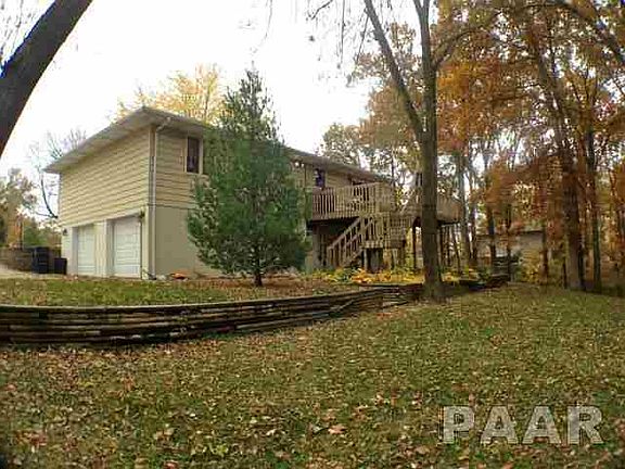Dont miss your chance to own this sharp 3 Bedroom 2.5 bath home on double lot in desirable Lake Camelot! Home features great open floor with beautiful hardwood floors in living room and ceramic tile in kitchen and dining room. Very spacious kitchen with plenty of counter space and island great for entertaining. Lower level features gas/propane fireplace (not hooked up) with sliders to patio. Deck off of dining room is a great space to relax and enjoy your nicely landscaped backyard with scenic timber backdrop!