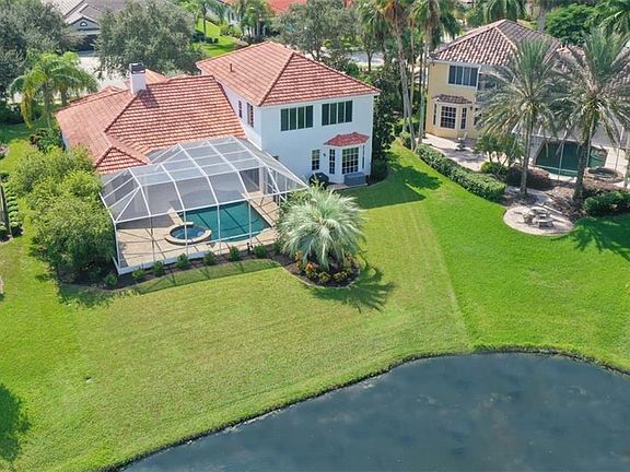 Immerse yourself in sophisticated modern luxury renovated home with a perfect marriage of form and function while situated on a premium lake front lot offering endless water and wildlife views. Sellers made over $130,000 of recent improvements including all new redesigned in-ground heated swimming pool and spa, in pebble tec pool surface, sun shelf and waterline tile accents. The welcoming foyer opens to a dramatic open living spaces with only the best finishes and features making this home look and feel better than brand new. The formal living room boasts a granite faced wood burning fireplace with custom shelving on either side and an entire wall of sliding glass doors opening to the outdoor oasis pool area with private cabana. Pleasing the inspired chef, the gourmet kitchen features custom cabinetry, one level island with breakfast bar, Carrara marble countertops, farmer's sink, all commercial grade appliances including Wolf 6 burner gas oven, with stainless steel direct exhaust hood, Thermador built-in refrigerator, microwave, dishwasher and a separate casual dinette. Combined within the master suite you will find a huge walk-in closet and a completely renovated spa-inspired master bathroom with a two person walk-in shower boasting floor to ceiling handmade Moroccan Zellige tiled walls and glass enclosures, separate soaking tub, double vanities and Porcelanosa floor tile shipped directly from Spain. The remaining residence consists of a formal dining room, spacious office on the first floor, an open family room flowing from the kitchen with direct access to the outdoor space, second floor media /bonus room with entire walls of windows overlooking the lake, three additional bedrooms with large closets, an oversized laundry/mud room with ample storage, extended paver lanai with resort style pool, spa, cabana, dedicated pool bath and covered entertaining area for outdoor retreats and celebrations! High quality finishes found throughout include: designer lighting, engineered hardwood flooring, high ceilings with new wide crown molding, replaced old baseboards with new custom-made 7 inch tall baseboards, glass entry double front door, newer carpets, extensive landscaping on all sides, 3 car side loading garage with ample storage areas, paver driveway and walkway, zoned HVAC systems (2), recently painted interior and exterior, self-cleaning pool with pop-up jets, and much more. Nothing but the best is awaiting for you. With over 3,500 sq.ft under air, and at $227 per sq.ft., this Lakewood Ranch home is in model perfect condition and a great value! River Club is a deed restricted golfing community with NO CDD fee, low HOAs, and is located near A-rated schools, world class shopping and dining, entertainment venues, Hospitals, Interstate, Sarasota International Airport and minutes away from Sarasota's famous white sugary sandy beaches.
