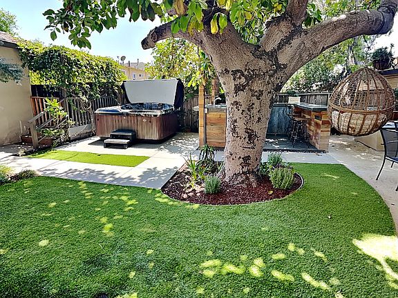 FREE on-site laundry is in a hallway off the backyard. Enjoy the beautifully landscaped front and peaceful shady back fully fenced common yards, where you'll find a newer Jacuzzi hot tub with a low-chlorine filtration system, a built-in outdoor kitchen with BBQ, barstools, concrete countertops, Turf Grass and a Gas Fire Pit with custom redwood benches ideal for relaxed evenings or casual entertaining. Shaded by a giant avocado tree (yes, you can pick them for guacamole!).