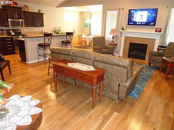 Immaculate light & bright 1-level home in Oak Hill Settlement. Gorgeous hardwds throughout. Vaulted, open great rm & kitchen features gas appliances, lg pantry, & gas fireplace. Lg master suite/bath with walk-in closet, soaking tub & shower.Awesome, fully landscaped backyard w/ covered patio, extended outdoor area, automatic sprinkler system w/ drip. Lg laundry rm, ceiling fans in great room, master & 2nd bdrm. Hurry, before it's gone!