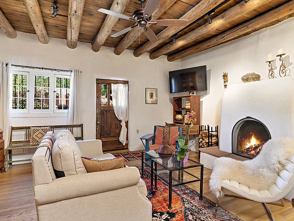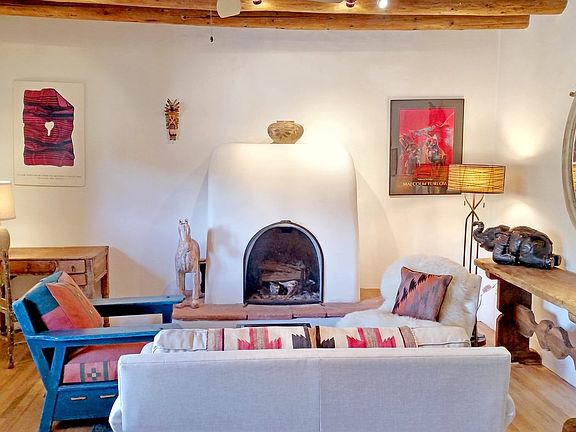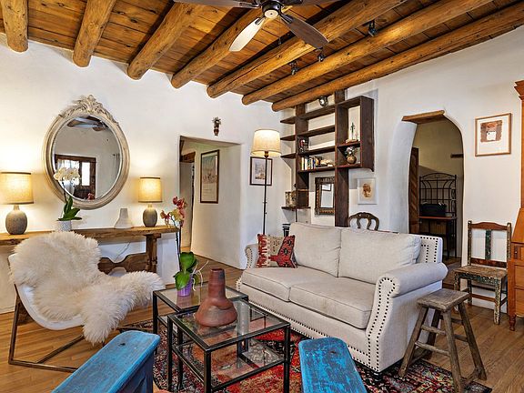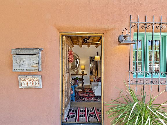 Shaped by the hands and lives of its storied residents, this Eastside compound of two, beautifully-crafted homes wraps a slice of Santa Fe history in a flexible package for modern needs. The two-bedroom, one bath front house, facing Canyon Road, is a mantle of serenity, with tall ceilings, oak floors and a sculptural kiva fireplace. Its updated kitchen, with corner kiva, adjoins a sun-drenched adobe dining room once used as a studio. Nestled between the front and back houses is a flagstone patio for alfresco dining and a spot of gardening. On the Acequia side, the recently-renovated back house has high ceilings, brick floors, a shepherd's fireplace, and numerous ceramic creations by former resident and ceramic artist, Priscilla Hoback. The updated kitchen blends stainless-steel appliances and granite counters with hand-hewn pine cupboards and Talavera tile. Each of the two, well-separated bedroom suites has space for an office. From the lush, peaceful garden is a staircase that ascends to Acequia Madre and additional parking. Turn the front house into a gallery or studio and live in the back; make one or both homes into rentals. Or, create a family compound. With RAC zoning for the front house, the possibilities abound. Enjoy the character and convenience of Historic, Eastside Santa Fe a minute's stroll or roll from Patrick Smith Park and the many galleries, shops and restaurants of Canyon Road.