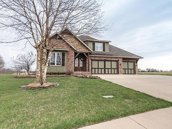 942 E. Grace St., Republic MO 65738 stunning all brick and stone one & a half story home situated on a large lot on a quiet street in Republic. Detached 30x18 2 car garage/ workshop. The impressive foyer invites you in with 10 foot stained shiplap ceilings. The home has 4 bedrooms and 3 baths, with gourmet kitchen, granite, 6 burner commercial gas stove and island and butler’s pantry and large walk in pantry. Kitchen opens to dining area and hearth room with 18 foot ceilings and stacked stone fireplace. A second large separate living room has 16 foot vaulted ceilings with wood beams and a second fireplace. Main floor master suite has vaulted ceilings with wood beams & matching giant barn door that leads into a totally remodeled bath. One additional bedroom is on the main floor with 2 on the second level. All bedrooms have walk-in closets with wood shelving. The walk in shower with dual shower heads was recently upgraded. Dramatic loft/study area overlooking hearth room plus two additional upstairs bedrooms. Great curb appeal, 3 car garage with walk in storm shelter, plus covered patio that is great for entertaining. Many upgraded amenities throughout the home make this a one of a kind property. Full cedar privacy fence ,new roof and updated finishes throughout December 2020.