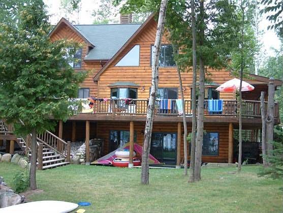 Long winding wooded driveway leads you into this private setting on over 3 acres with 108' of Mullett Lake Beachfront. Full log home with 4 bdrm, 4 baths, beautiful real stone firplace, huge deck and covered porch. Great room is 20x26, plenty of rooms for all the family and friends. Beds for 15 people, not included couches. Boat to anywhere in the world from this Inland Waterway Location.