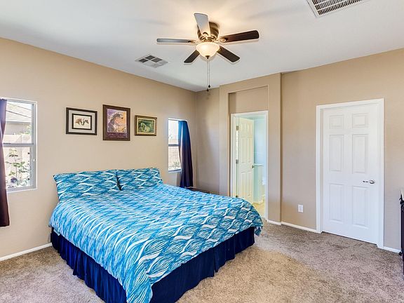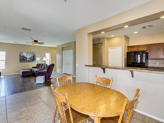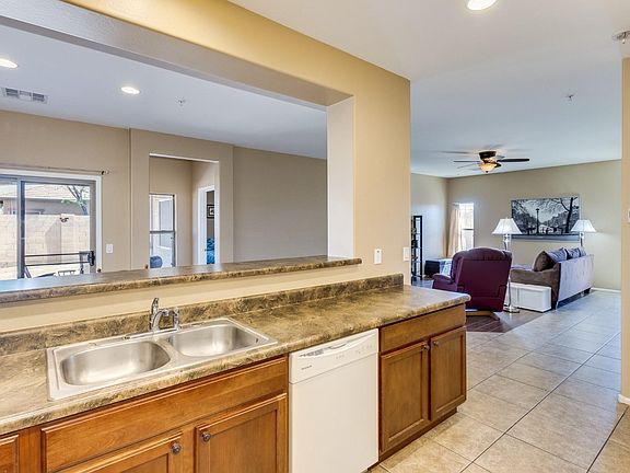This well cared home awaits you. Seller took great owner pride in this home and is ready to sell it to another to enjoy and love it the same. Located on a corner lot with mountain views, this single story home welcomes you as you walk up the path to the front patio w/ brick lined walls. The open family and dining room room great you to wood laminate flooring w/tile and vaulted ceilings. The kitchen is tucked over with an open breakfast bar and plenty of cabinets and all appliances included. The Master bedroom suite w/full bath is split from the other 2 bedrooms and features sep tub and shower and large walk in closet. The views of the covered back patio and simple landscaped back yard is ready for you to make it your own. Laundry room features cabinets & washer & dryer. Call today.