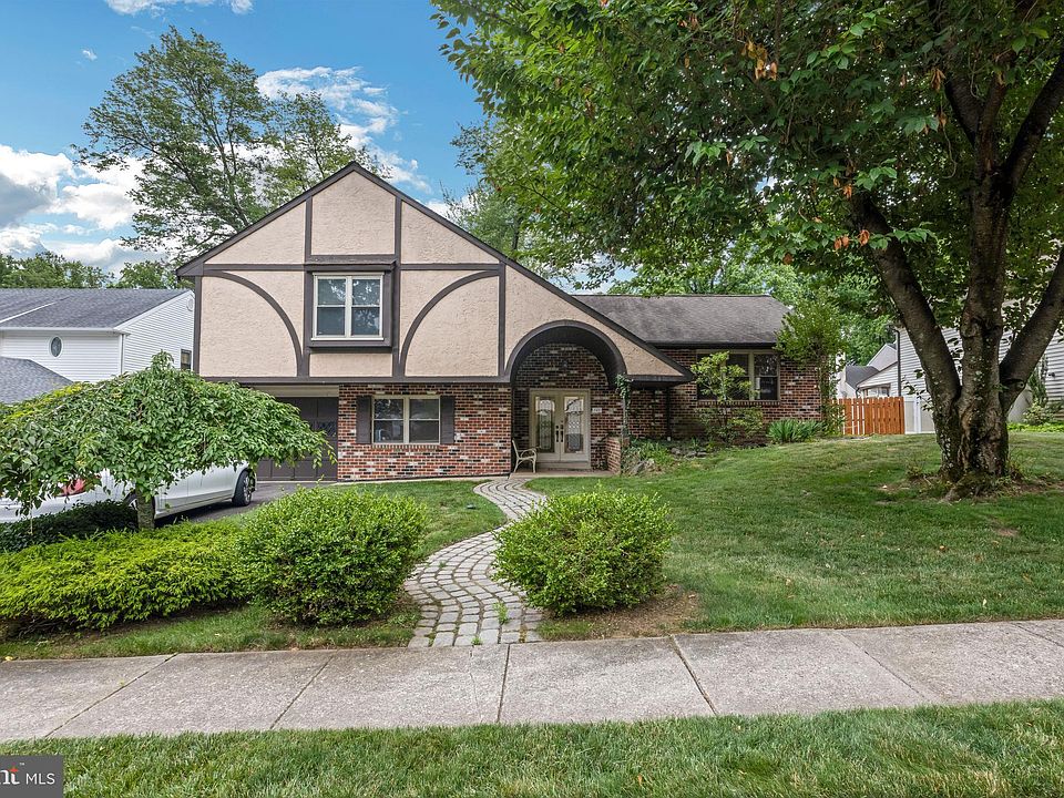 Welcome to Woodlyn Crossing. The Crossing is a beautifully established development near Playwicki Park, where homeowners find, they can easily get to Philadelphia and other surrounding areas through public transportation or nearby highways. At its entrance, the development has beautiful ponds with water features. Enjoy the amenities maintained by the HOA such as tennis courts, swimming pool, bike trails and walking paths. Enter this Tudor style home through the sun-drenched foyer. This area features hardwood flooring, a turned staircase, and a double coat closet with mirrored doors. From here, a short staircase leads up to your living, dining, and kitchen areas. Or a short step-down flow to your family room, powder room, laundry, storage, basement areas and entrance to the garage. The living room features solid wood flooring and has a wide window for a gorgeous view of your front yard. Continuing through the home is the spacious dining area that leads out to the remodeled eat-in kitchen, complete with tiled floors, an abundance of wooden cabinets, granite countertops, tile backsplash, electric cooktop & electric self-cleaning oven, built-in microwave, undermount sink, garbage disposal, dishwasher, and a pantry. Continuing the first floor is the sunken family room. Enjoy cozy nights around the wood burning brick fireplace with full wall mantel. The second floor has four generously sized bedrooms, including a main bedroom with two closets, makeup area, and a newly remodeled full bathroom with a tiled stall shower and tile flooring. The other three bedrooms share a remodeled hall bathroom with a tiled tub and tile flooring. Completing the second floor is a shelved linen closet in the hallway. There is so much that this home has to offer. Highly rated Neshaminy School District, near Core Creek Park, Sesame Place, and great restaurants. It is conveniently located near major highways like the 295 and the PA Turnpike.