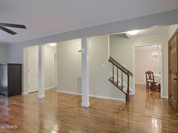 Highest and Best offers due Saturday, April 6th by 3pm. The whole kit and caboodle is right here in Country Club Hills. Looking for a backyard wonderland? Then look no further! You'll enjoy sitting on the deck overlooking your own private forested space that shelters a variety of birds and wildlife. This spacious lot has been meticulously cared for - from the established azalea bushes and mature trees to the liriope edging the driveway and walkways as well as the outdoor lights. Gather in the open spacious living area that will warm you on those cold nights with a wood burning fireplace and bring in the sunlight with the abundance of windows. Natural lighting dances on the ¾ in Bruce hardwood floors throughout the main living areas. Entrances to the half-wrap around porch and French doors to the newer deck allow you to enjoy being in nature while indoors. Mosey through the short hallway to the kitchen that will AMAZE you. Noteworthy are the granite countertops, individually controlled under cabinet lighting, high-end soft close cabinets, coffee/wine bar, stainless steel microwave and convection oven - all of this with a bay window providing natural light and a lovely space to look out on your large private backyard. For those times when you need a little more seating, the formal dining room is next to the kitchen. The laundry room is functionally set up to be shut off from the kitchen and leads into the multiuse room. This room can be used for storage, a private office, additional bedroom, mud room, gaming room - you choose. Upstairs you will find the 3 bedrooms and 2 full bathrooms. The hall bathroom has been completely renovated boasting new tile flooring, vanity, paint, and walk-in shower. New carpet installed in all rooms March 2024. The master bathroom has been renovated with a new vanity, toilet, paint and flooring. Abundant storage inside and out to include wired workshop in the backyard with covered boat and equipment parking.