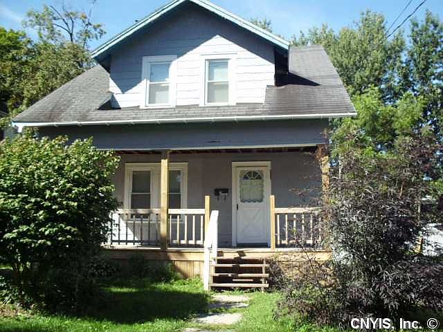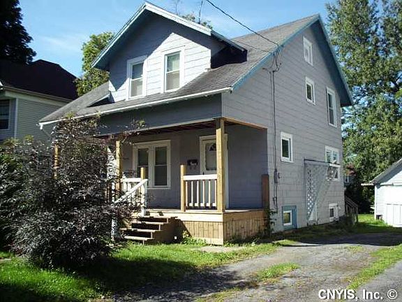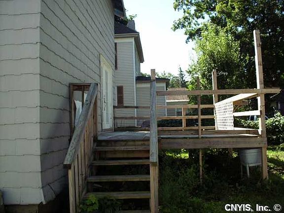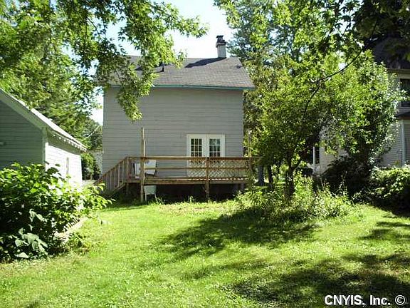 Many updates nice two story home with large living room with corner wood burning fireplace surrounded by stone. Dining room with new French doors leading to deck overlooking large yard. Beautiful spacious kitchen with hand made cabinets and stainless steel stove. Upstairs features a large full bath which is completely new, including the flooring. 3 bedrooms with closets. Carpet in bedrooms. Full basement. Detached one car garage