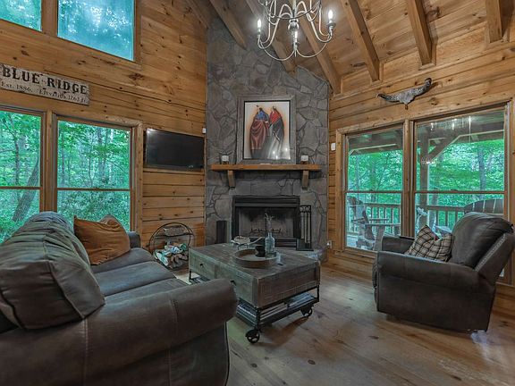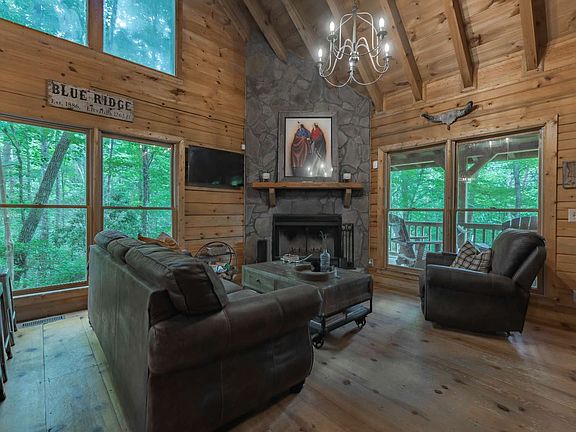Dreams of living among the trees with a beautiful view of the lake, this Solid log cabin won't disappoint. Open floor plan with updated kitchen and baths. Gorgeous glassed in meditation room off of the primary suite. Tons of out door entertaining space on 2 decks and a lake patio. Minutes from downtown Blue Ridge make this the perfect escape for the weekend or a lifetime. Excellent rental potential. Fully furnished and ready to go.