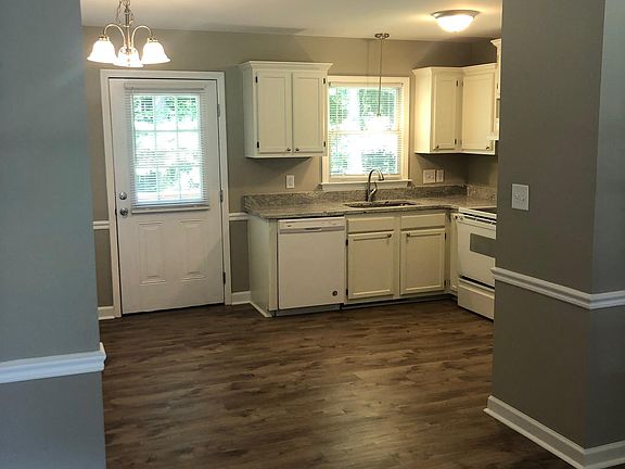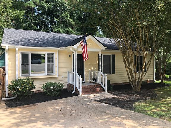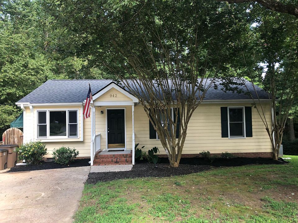 Cute three bedroom, two bath home on a cul de sac. One story ranch on wooded lot in a friendly neighborhood. Brand new vinyl plank flooring throughout kitchen, hall, and bathrooms. Freshly painted interior with new granite countertops in the kitchen. Updated lighting and brand new vanities in both bathrooms. A large back porch overlooks the beautiful, secluded backyard boasting a tranquil stream. Paved, private driveway that can easily fit 3 cars and handicap accessible ramp to back door. Great indoor and outdoor storage -- three hall closets and a large exterior storage space. No pets. No Smoking. Richland Creek Elementary School Wake Forest Middle School Wake Forest - Rolesville High School Lawn care is included! We are seeking a well qualified applicant with: -600 or better credit score -Clean criminal record -No evictions -Good landlord references -No pets/No smoking